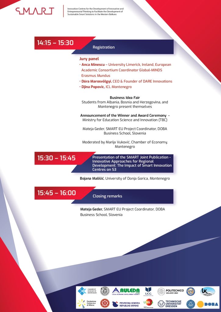 - Showcasing of best practices developed by SMART Innovation Centres in Albania, Bosnia and Herzegovina, and Montenegro.