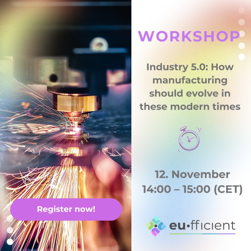 This workshop, organised within the framework of the EU.FFICIENT Project, offers a forward-looking discussion on how manufacturing can evolve to meet the demands of our rapidly changing world. By integrating technological innovation with ecological awareness and social responsibility, Industry 5.0 redefines what it means to create value in modern times.